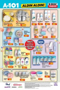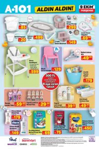 A101 9 Ekim aktüel ürünler kataloğu, bu hafta özellikle bebek ürünleri, oyuncak çeşitleri ve gıda kampanyalarıyla ilgi görüyor. “Aldın Aldın” sloganıyla sunulan A101 fırsatları, uygun fiyatlı ve kaliteli ürün arayanlar için büyük avantaj sağlıyor. Türkiye genelindeki tüm mağazalarda geçerli olacak A101 kampanyaları stoklarla sınırlı şekilde satışa çıkacak. A101 aktüel fırsatları sayesinde hem ev ekonomisine katkı sağlamak hem de ihtiyacınız olan ürünleri uygun fiyatla satın almak mümkün.