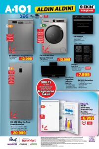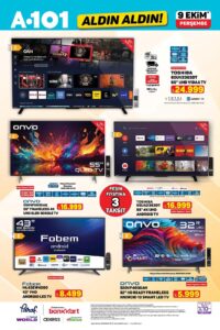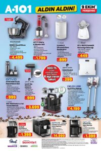 A101 9 Ekim 2025 aktüel ürünler kataloğu ile televizyon, beyaz eşya, küçük ev aletleri ve mutfak ürünlerinde büyük indirimler tüketicileri bekliyor. A101 indirimleri sayesinde gıda, atıştırmalık ve temizlik ürünlerinde de cazip fırsatlar öne çıkıyor. A101 kampanyaları, bu hafta da alışveriş listelerini uygun fiyatlarla doldurmak isteyenler için kaçırılmayacak seçenekler sunuyor.
