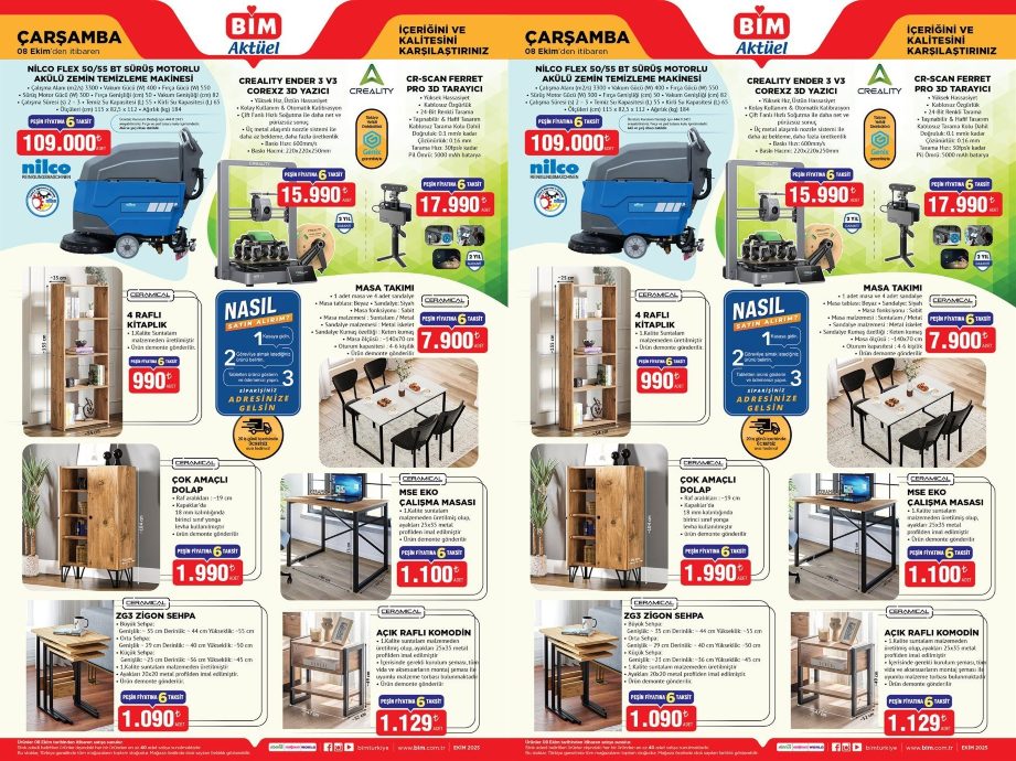 BİM 8 Ekim 2025 aktüel ürünler kataloğu teknoloji, mobilya ve temizlik kategorilerinde öne çıkan ürünlerle yayınlandı. Bu haftanın en dikkat çeken ürünü, profesyonel kullanım için tasarlanan Nilco FLEX 50/55 BT akülü zemin temizleme makinesi oldu. 109.000 TL fiyatıyla satışa sunulan bu ürün, işletmelerde geniş alanların kolayca temizlenmesini sağlıyor. Katalogda ayrıca 3D yazıcı teknolojisine ilgi duyanlara hitap eden Creality Ender 3 V3 CoreXZ 3D Yazıcı ve yüksek hassasiyetli Creality CR-SCAN Ferret Pro 3D Tarayıcı da yer alıyor. Bu ürünler, özellikle teknoloji meraklıları için önemli fırsatlar sunuyor.